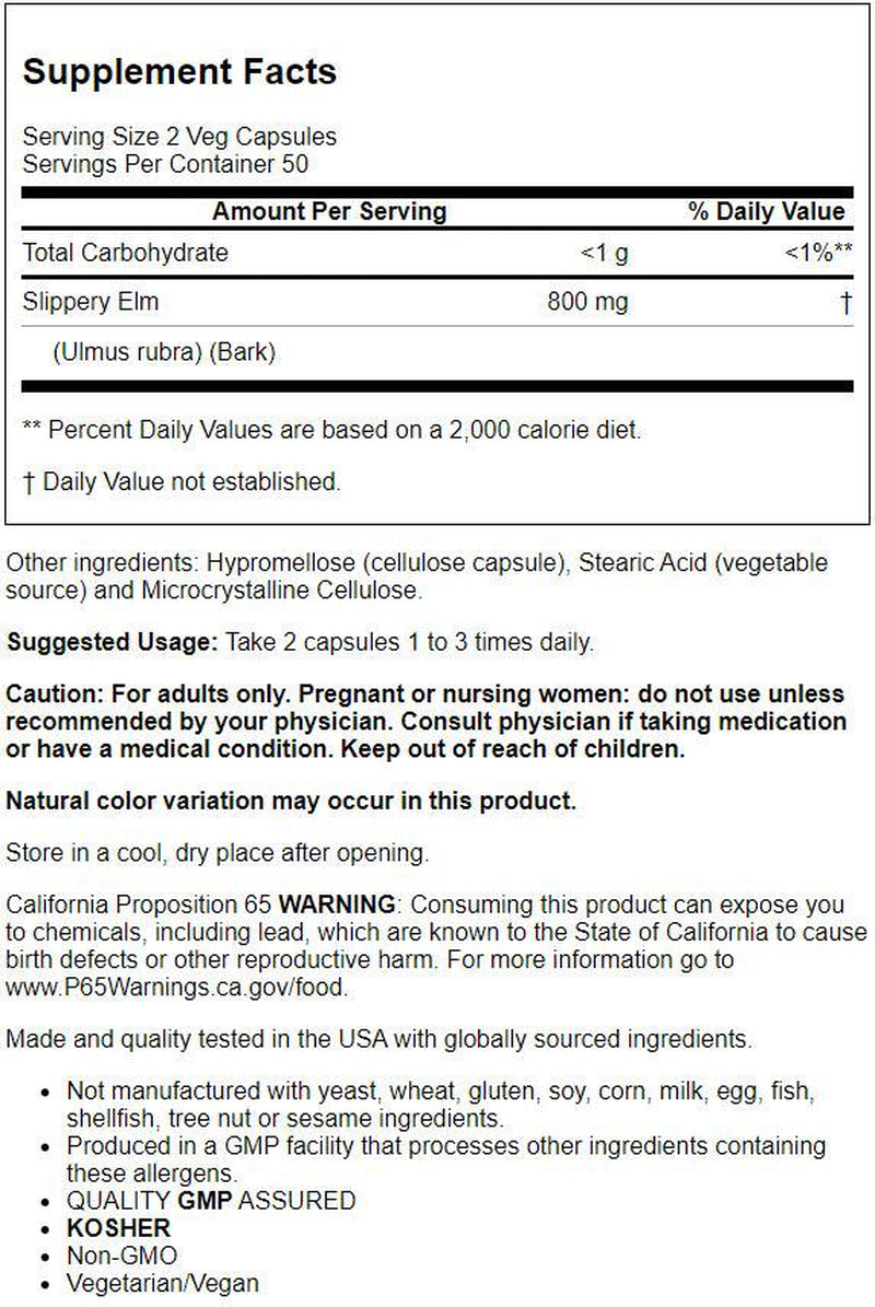 | Product Name | NOW Supplements, Slippery Elm (Ulmus rubra) 400 mg, Herbal Supplement, 100 Veg Capsules |