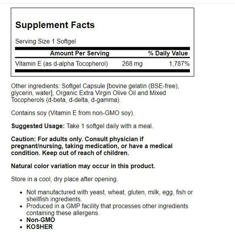 Vitamin E is a major fat-soluble antioxidant that is particularly important for maintaining cellular health by neutralizing free radicals formed through normal metabolic processes, as well as through environmental exposures.* In addition to its antioxidant activities, vitamin E is also vital for a normal immune function and for maintenance of a healthy vascular system.* Natural color variation may occur in this product.