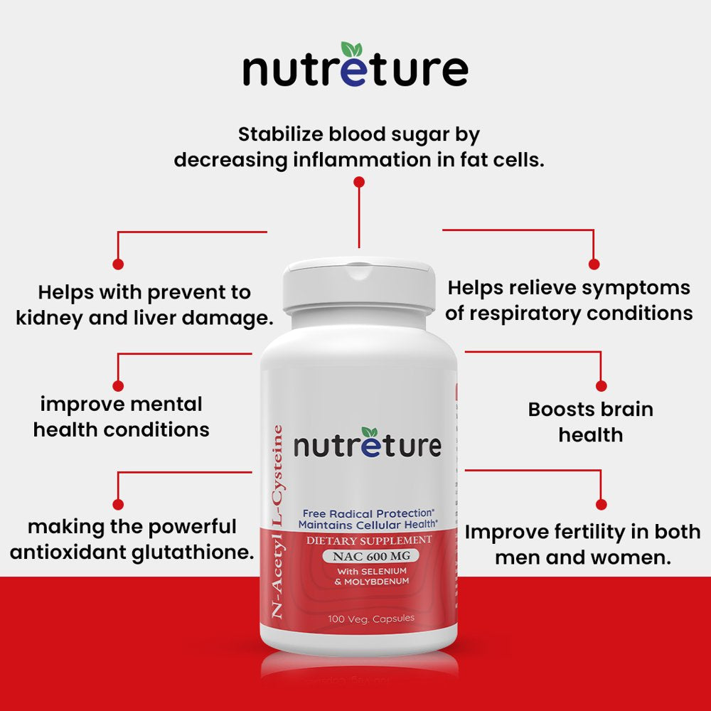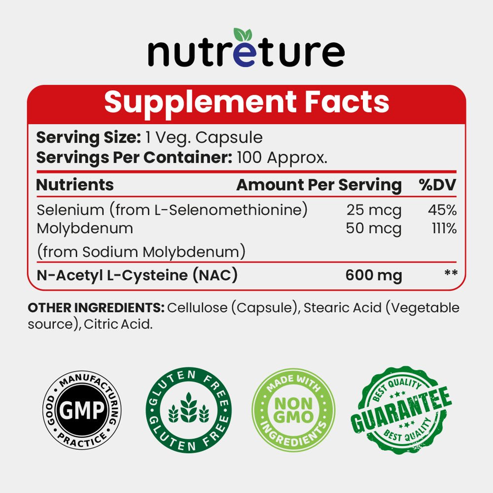 NUTRETURE Nac Supplement N-Acetyl Cysteine Liver Supplement with Selenium & Molybdenum for Liver Health | N-Acetyl Cysteine 600 Mg 100 Capsules