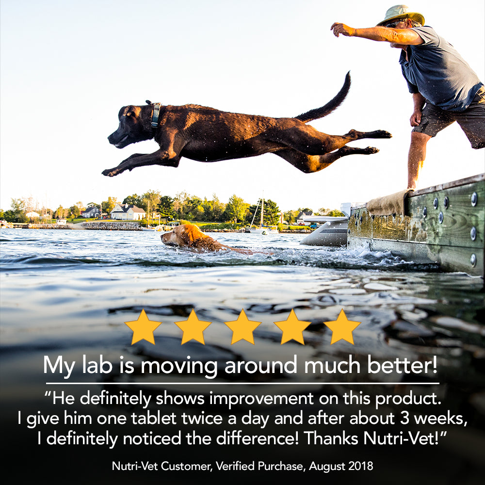 Nutri-Vet Hip & Joint Extra Strength Chewable Tablets provide balanced levels of glucosamine for dogs, plus chondroitin, methylsulfonylmethane (MSM), and hyaluronic acid to help your dog maintain healthy canine joint function and connective tissue. These liver-flavored chewables are veterinarian formulated to provide the best joint supplement for dogs.