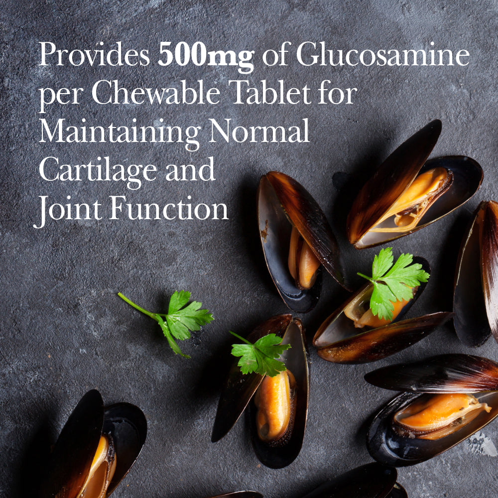 - EXTRA STRENGTH HIP & JOINT SUPPORT: Each chewable tablet contains balanced levels of glucosamine for dogs (500 mg), plus chondroitin (200 mg), MSM (50 mg) and hyaluronic acid (6 mg) to help dogs of all ages maintain healthy joints and connective tissue.