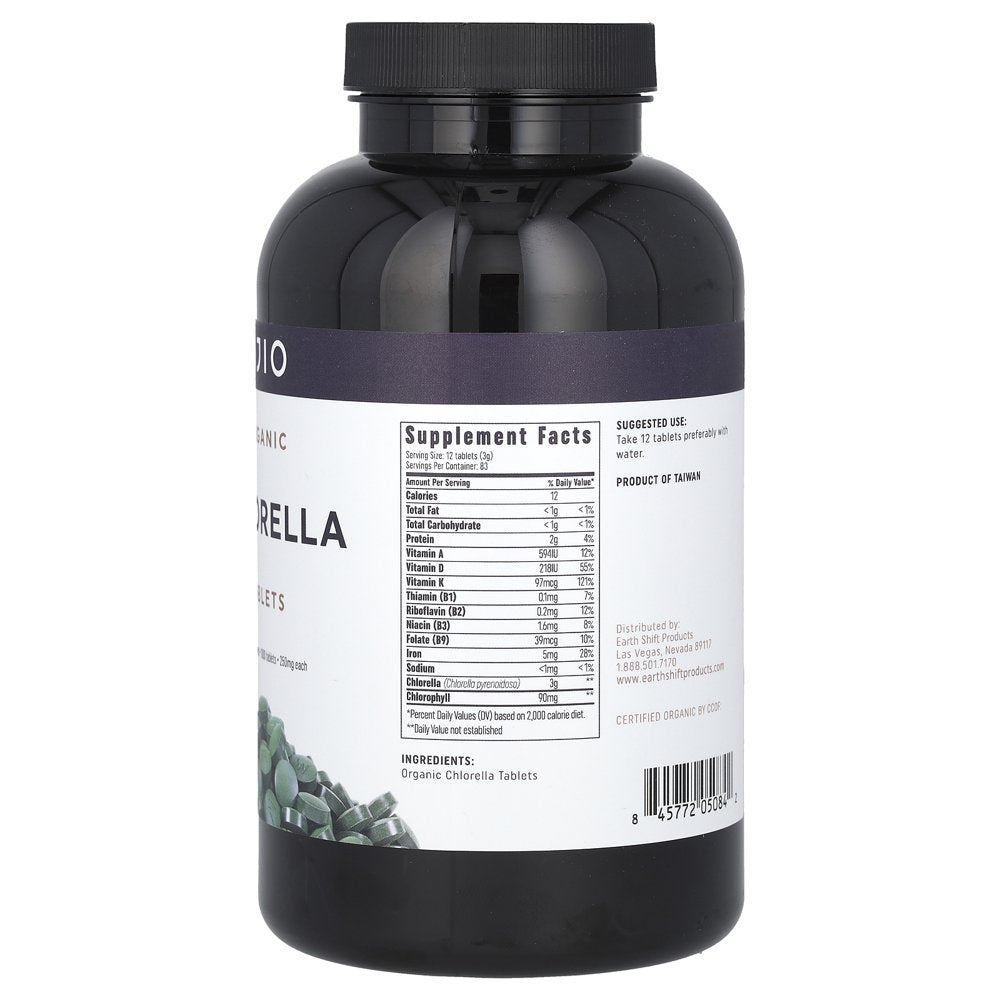 Dietary Supplement USDA Organic Kosher Certified Organic by CCOF Chlorella is a single-cell green algae with a broad range of vitamins, minerals and phytonutrients. Ojio Organic Chlorella is cultivated in Taiwan using pure nutrient-rich water, in a carefully controlled certified organic system. Our chlorella is then tableted and packaged without the addition of binders, preservatives, or other agents, with care taken to protect quality and nutrients. Chlorella Benefits: Over 60% protein with a complete spectrum of Amino Acids High in Vitamin D, K, and Iron Broken cell wall utilizing a gentle pressure release method to unlock nutrients Contains phytonutrients and chlorophyll to help oxygenate and protect cells