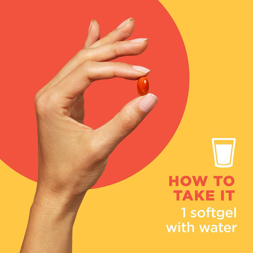 - HOW TO TAKE: Take 1 softgel with water daily. Swallow whole, do not chew. Comes with 30 capsules per bottle for a 30 day supply