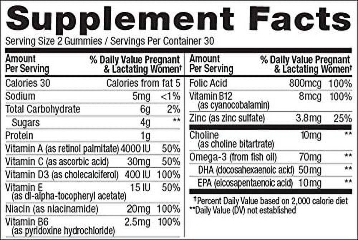 - OLLY ESSENTIAL PRENATAL MULTIVITAMIN: Gummy prenatal vitamins that go the whole nine with you & your growing baby. Belly-friendly citrus fruit gummy prenatals have essential nutrients for a healthy pregnancy: folic acid, Vitamin D, & Omega-3 DHA*