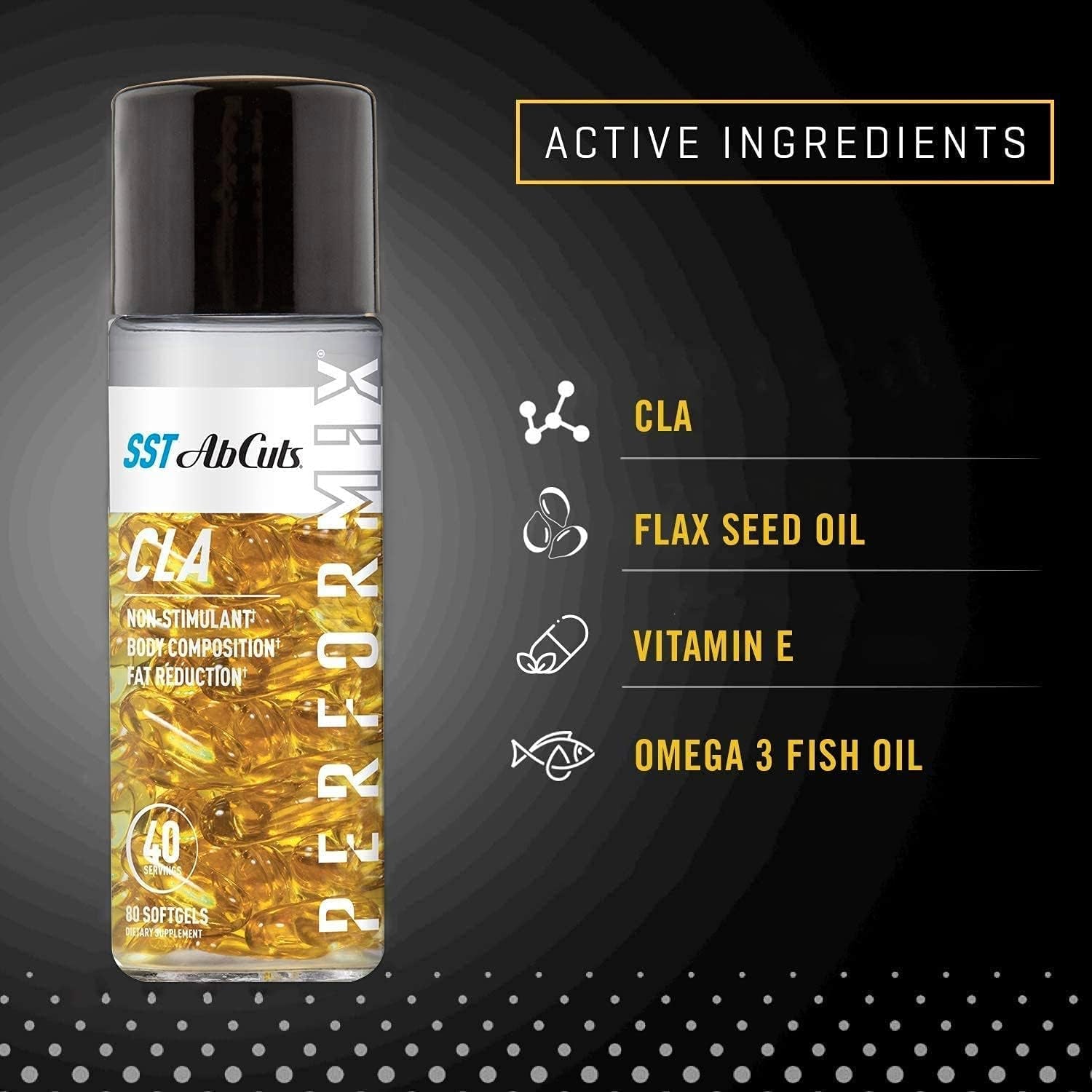 - SST Ab Cuts CLA: Conjugated Linoleic Acid (CLA) is a naturally occurring fatty acid found in high concentrations in Safflower (Carthamus tinctorius). SST AbCuts CLA contains absolutely no stimulants, therefore avoiding negative side effects such as jitters or headaches that are common in other products. SST AbCuts includes Omega 3 Fish Oil, Flax Seed Oil, and Vitamin E. When combined with a balanced diet and regular exercise, AbCuts can help you reach your goals.