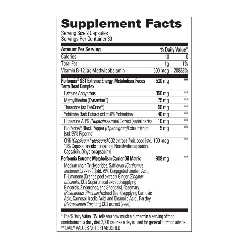 Performix SST V3X - 60 Capsules - Dietary Supplement for Supercharged Energy, Intense Mental Focus and Fast Metabolism - Caffeine, Dynamine, and Teacrine - 3X Longer Lasting is backordered and will ship as soon as it is back in stock.