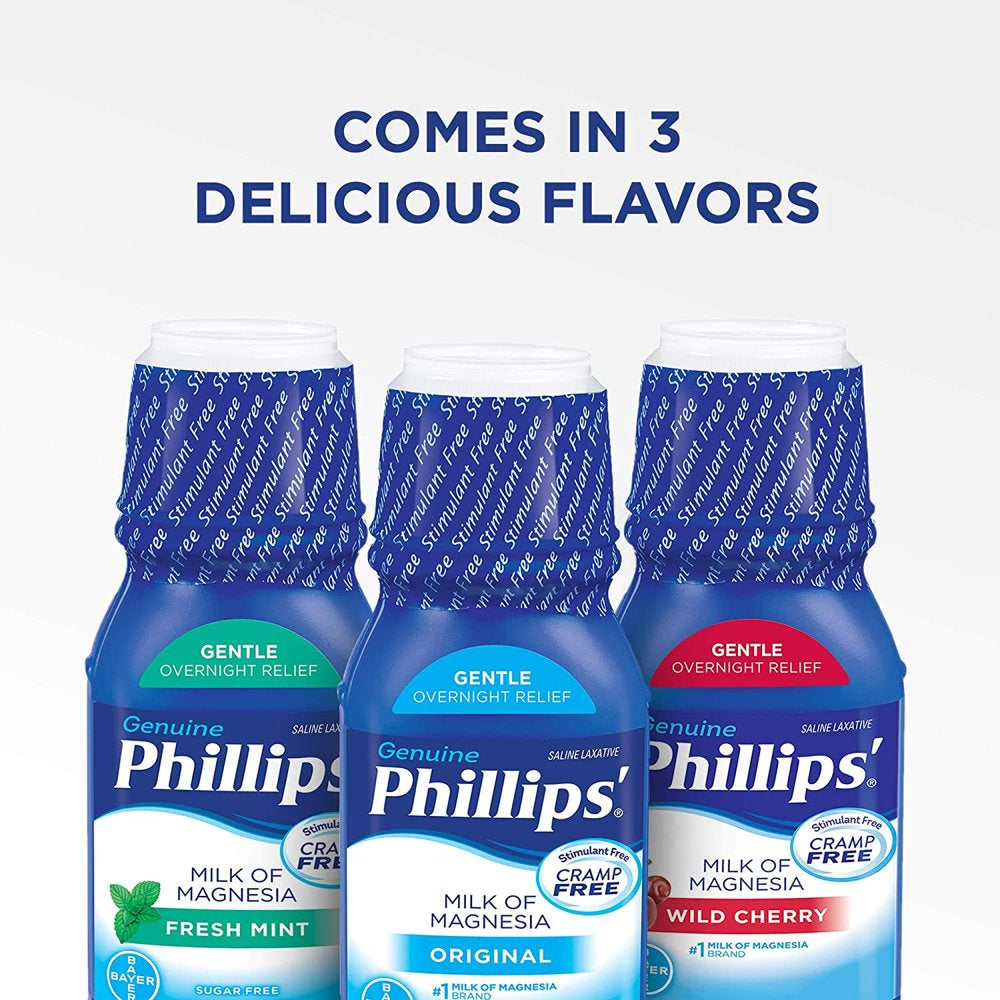 - Formulated with Magnesium Hydroxide 1200 mg, Phillips Milk of Magnesia gives you gentle, overnight relief.
