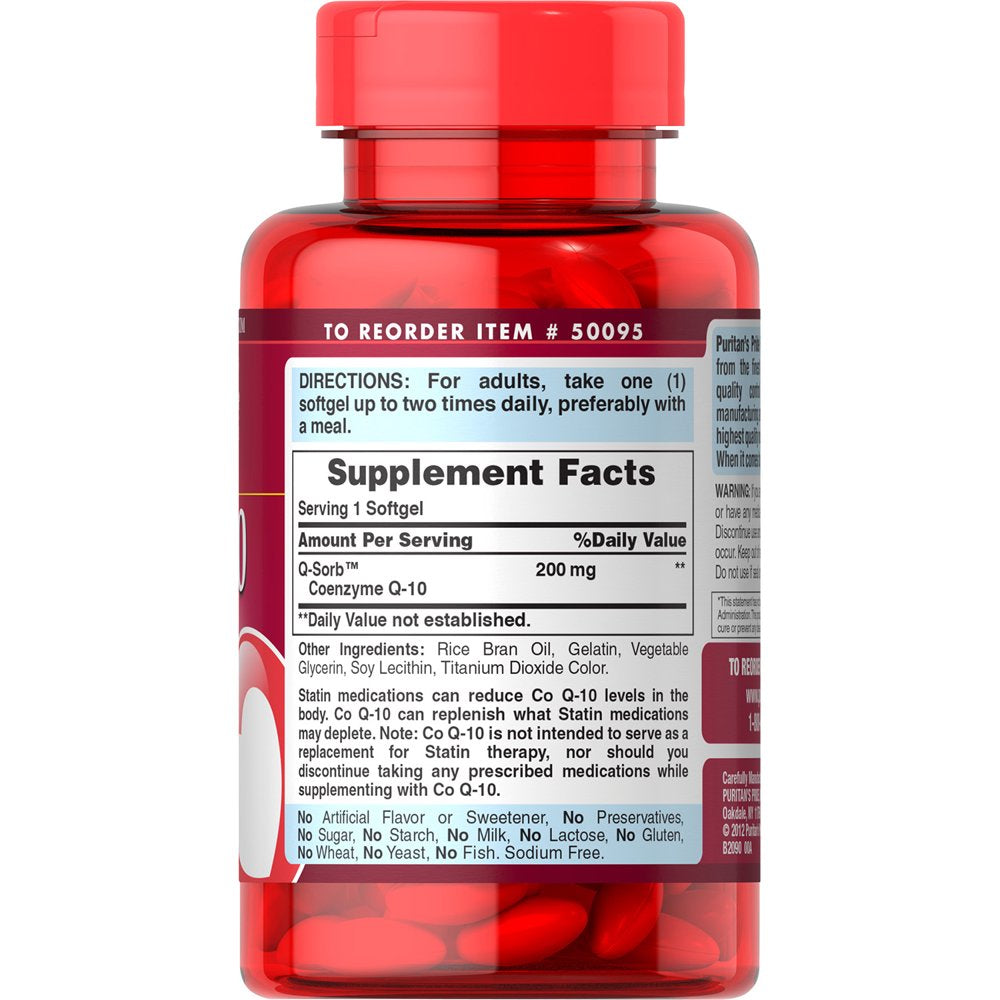Coenzyme Q-10 (Co Q-10) is a key antioxidant that has a big job: supporting you as you age gracefully.It plays numerous roles within the body such as supporting energy production and fighting off cell-damaging free radicals which is what makes Co Q-10 an important compound in your body.Co Q-10 contributes to cardiovascular wellness and energy production within your heart. If you're looking to support a healthy heart and blood-pressure levels that are already within a normal range, Co Q-10 does just that. It also promotes oral and gum health, which is also good for the heart. Puritan's Pride's own Q-SORB Co Q-10 is a natural, highly bioavailable form of Co Q-10, and is ingredients sourced from around the world. Co Q-10 levels within cells may decline with age. They may also be reduced in those who take statin medications, which are often prescribed for high cholesterol. Q-SORB Co Q-10 can help replenish what statin medications deplete. Co Q-10 is not intended to serve as a replacement for statin therapy, nor should you discontinue taking any prescribed medications while supplementing with Co Q-10.