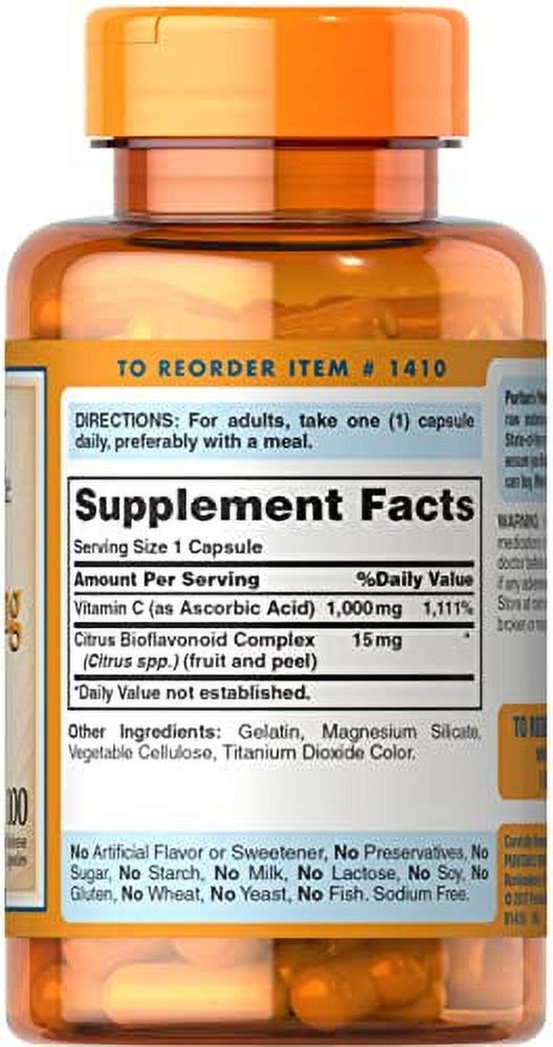 Puritans Pride Vitamin C-1000 Mg with Bioflavonoids Capsules, 100 Count
