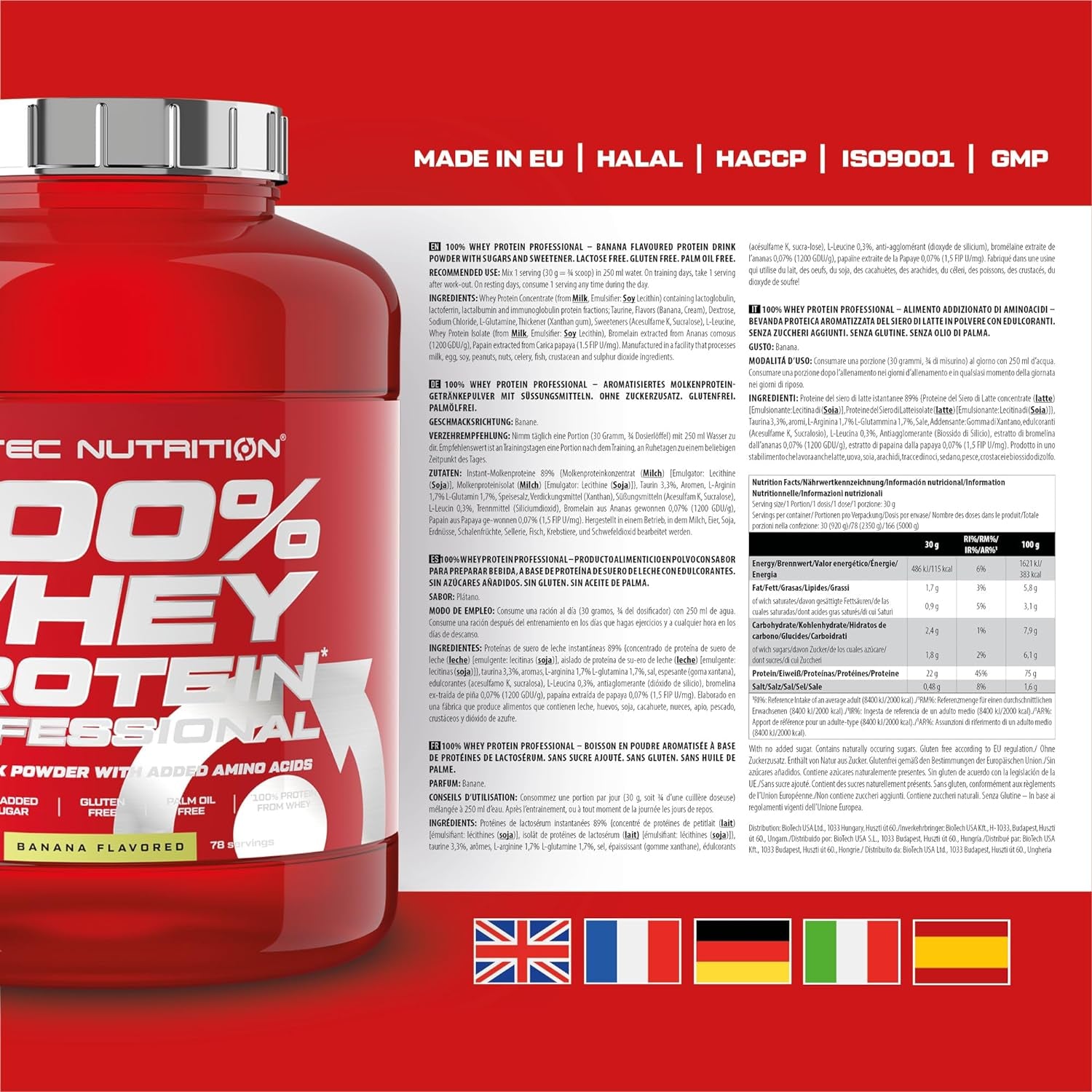 Scitec Nutrition 100% Whey Professional 2350G Banana Protein Supplement